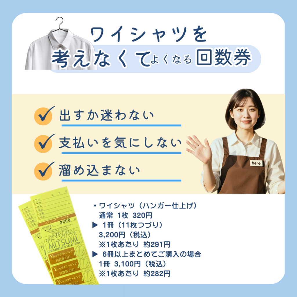 ワイシャツ回数券のご案内|毎日のクリーニングをもっとラクに
