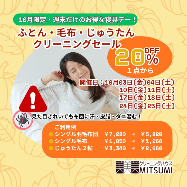 秋の寝具クリーニングセール 布団・毛布・じゅうたんを特別価格でダニ・カビ対策