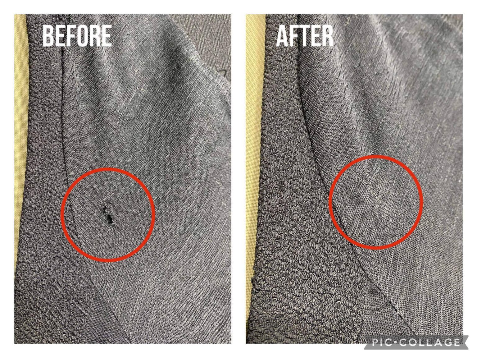 カーディガンの虫穴修理🪡 2023.08.27 カテゴリー: 修理・リペア タグ: キズ・穴・やぶれ・ほつれ修理 📸カーディガンの虫穴修理🪡 📝糸切れと目落ちの複合穴でしたので、縫い詰めで修理させて頂きました‼️ 一点一点、お客様のご要望に合わせて修理させていただきます♪