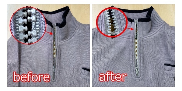 📸セーターのファスナー交換の対応事例 📝セーターのファスナーを全交換させていただきました。ファスナーは歯が欠損してしまうと使えなくなります。いろいろなタイプのファスナーがありますが歯の欠損で閉まらなくなるので、お取り扱い […]