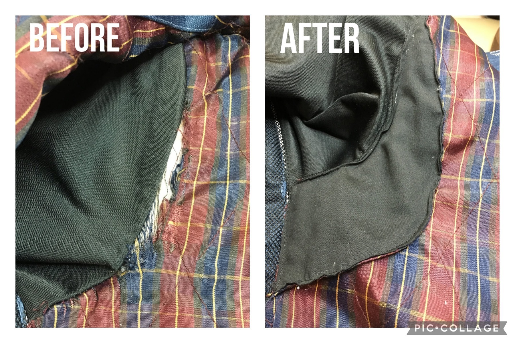 📸ジャケットの裏地破れ修理 📝着用による裏地の損傷が大きく、裏地を足し修理をいたしました✨ 裏地の取り替えなども受け付けております!お問い合わせお待ちしております