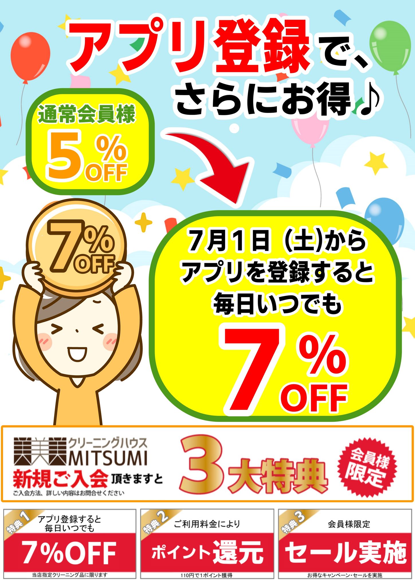 日頃は当店をご利用頂きまして誠にありがとうございます。7月1日(土)より、当店アプリ会員様の特典を一部改定いたしました~♪ 6月までは「メンバーズカード会員様、アプリ会員様」共に「毎日いつでも当店指定クリーニング品が5% […]