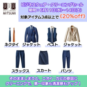 対象アイテム:ネクタイ・ジャケット・ベスト・スラックス・パンツ・スカートの中から、