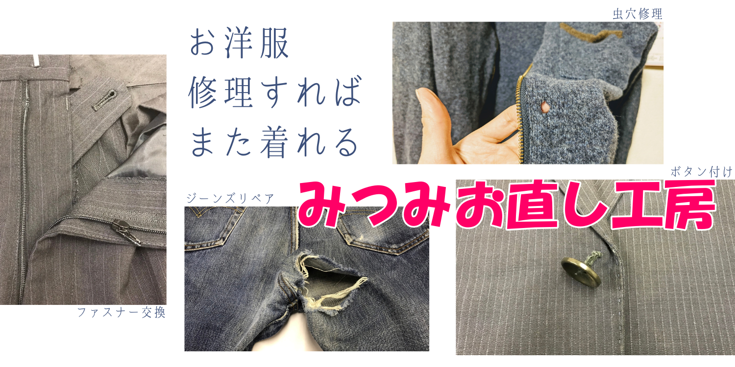 「みつみお直し工房」は、クリーニングハウスみつみの一部門として、20年間にわたって地域の皆様から信頼を得てきました。これからも品質とサービスにこだわって、お客様の衣類のお直しをお手伝いします。どうぞよろしくお願いいたします。